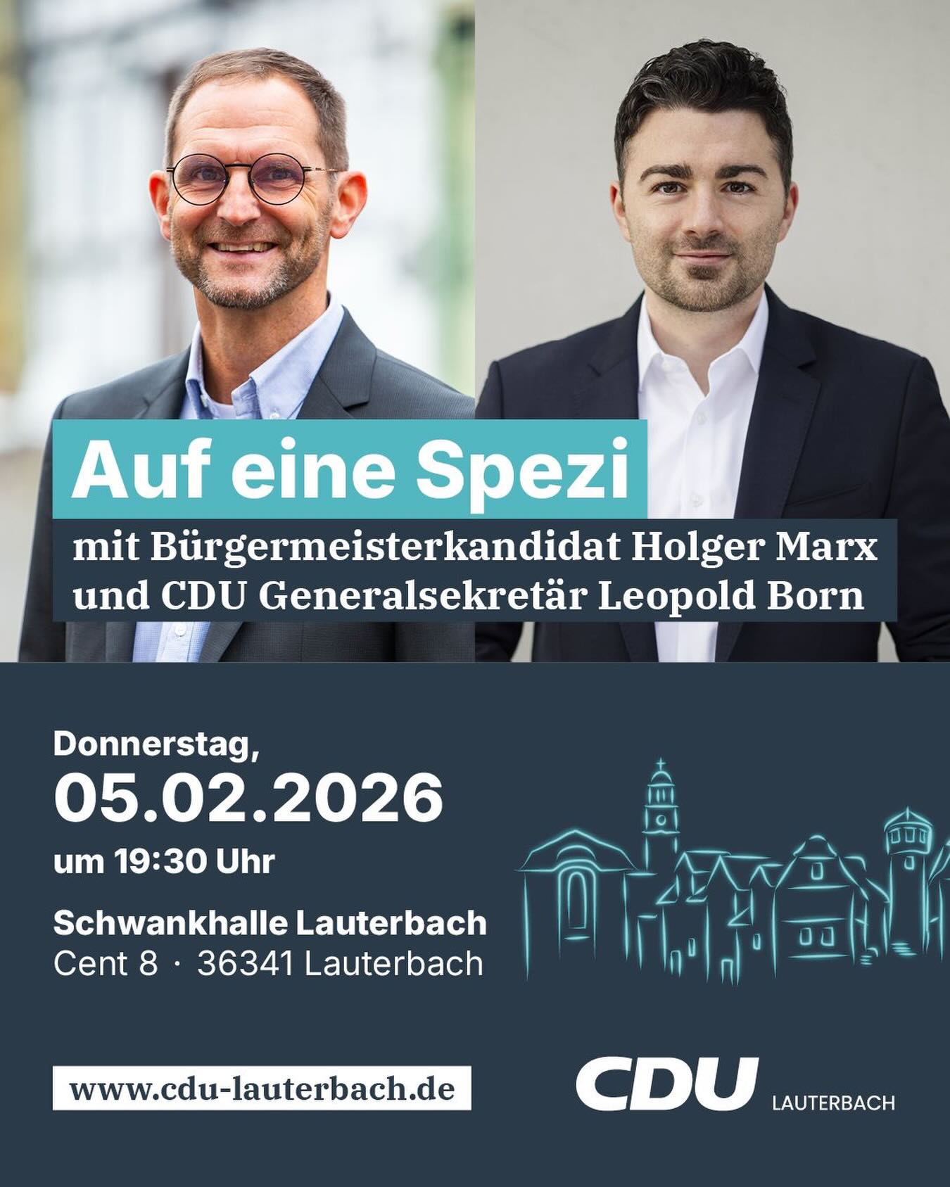 Ich bewerbe mich bei der am 15.03.2026 anstehenden Bürgermeisterwahl für das Amt des Bürgermeisters in der Kreisstadt Lauterbach und bitte Sie auch an dieser Stelle sehr herzlich um Ihre Unterstützung.